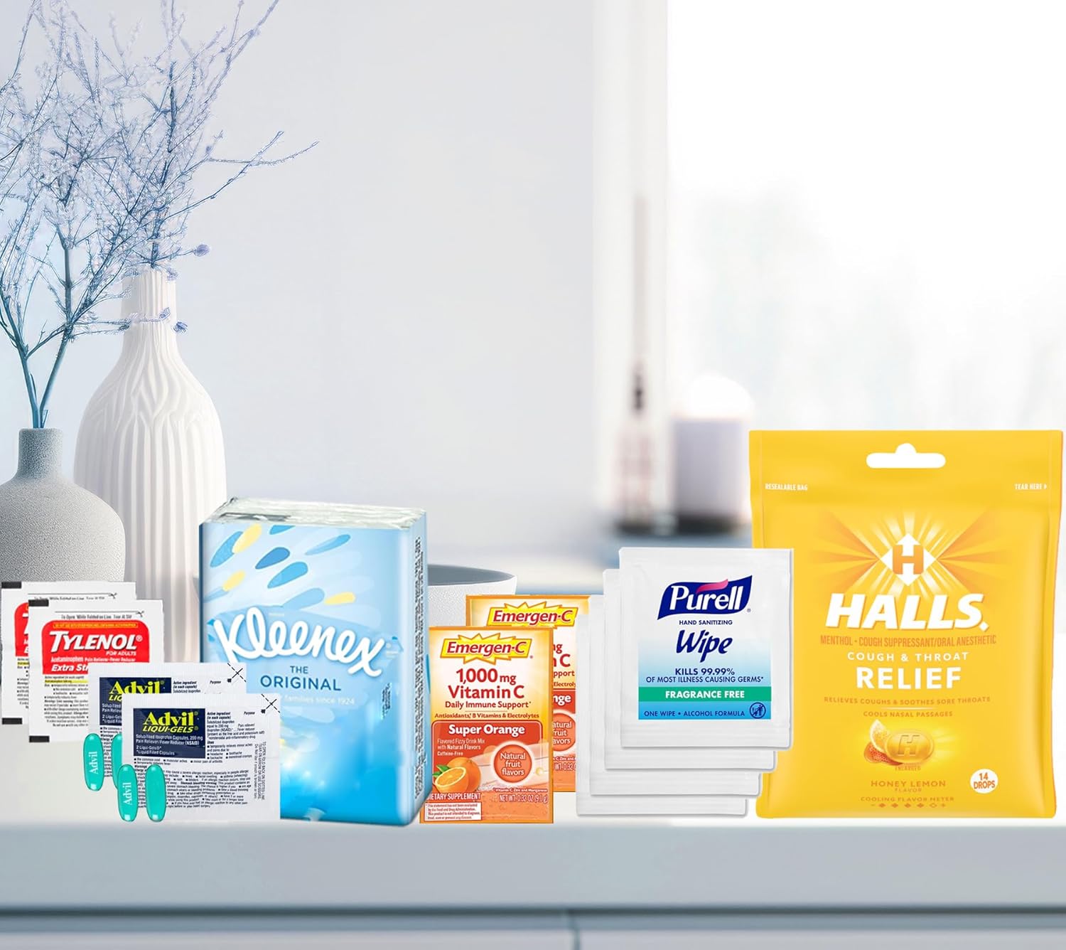 - π Health Essentials β Comes with ibuprofen, acetaminophen, vitamin C, and wipes to help ease flu symptoms and support wellness.