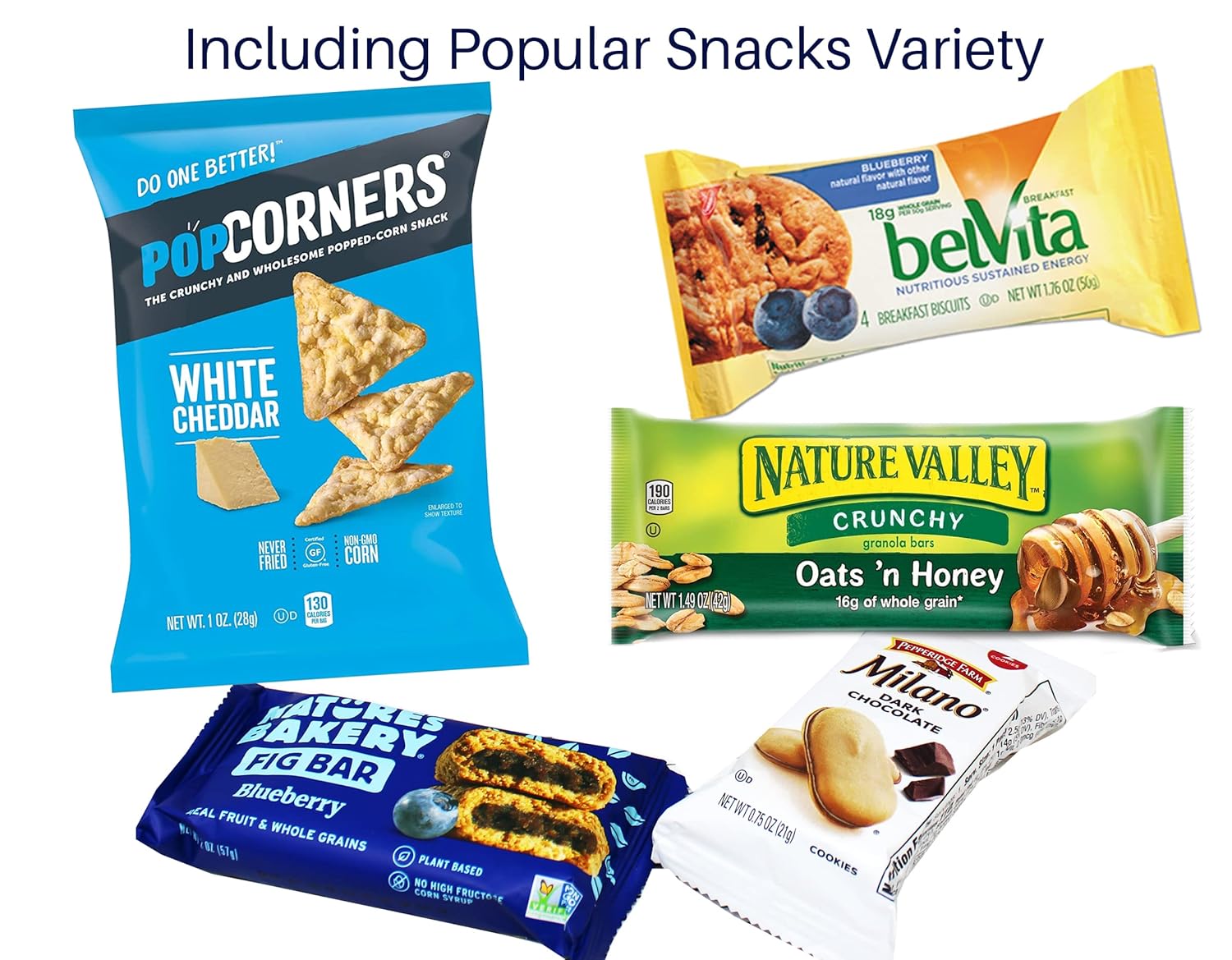- ♥♥Including Popular Snacks Variety Pop corners Snack ( flavors may Vary), Breakfast Healthy Cookie ( Bel vita), Oat n Honey granola bar, Milano chocolate cookies, fig bar