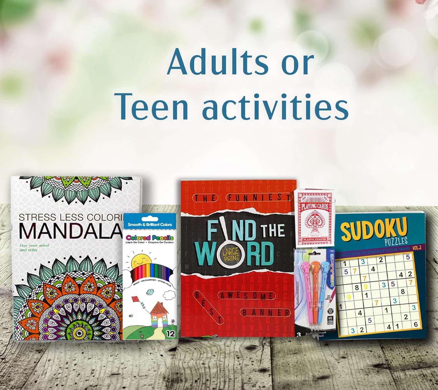 - ♥♥Great Activity books bundle with coloring pencils and mechanical pencil and playing card game for college care package, Sick person care package, Cancer gifts for women after surgery recover men, kids get well soon gifts for kids
