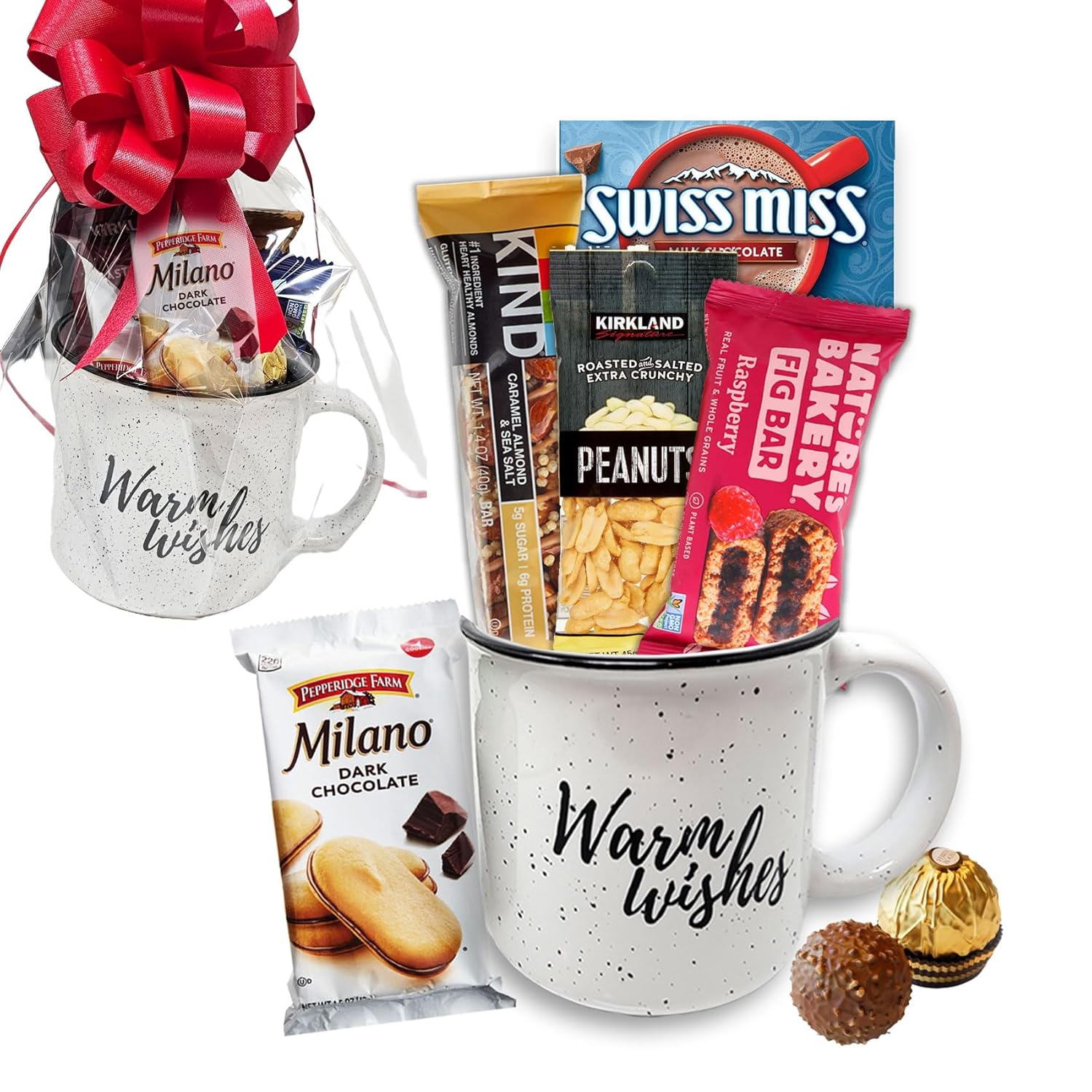 - ♥ GIFT BASKET INCLUDES: Premium Coffee / Tea mug with Kind bar, Milano cookies & Health bar, premium chocolate ball & nuts