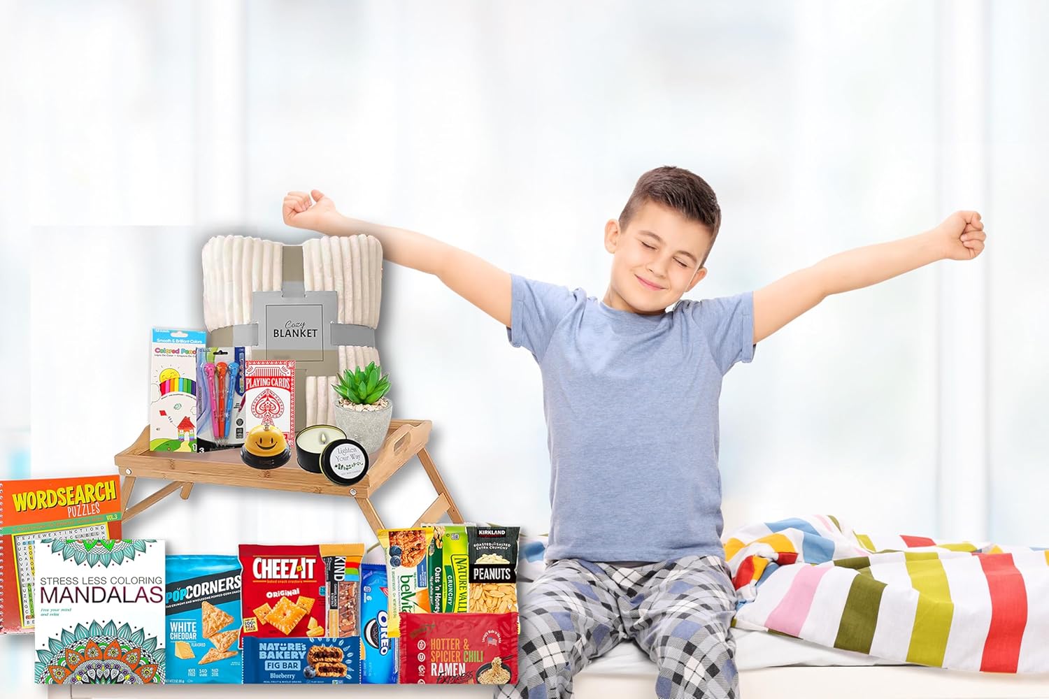 - ♥Show your sympathy and compassion with the ultimate care package with a variety of goodies. Activities to help pass the time, Blanket, snacks, and more