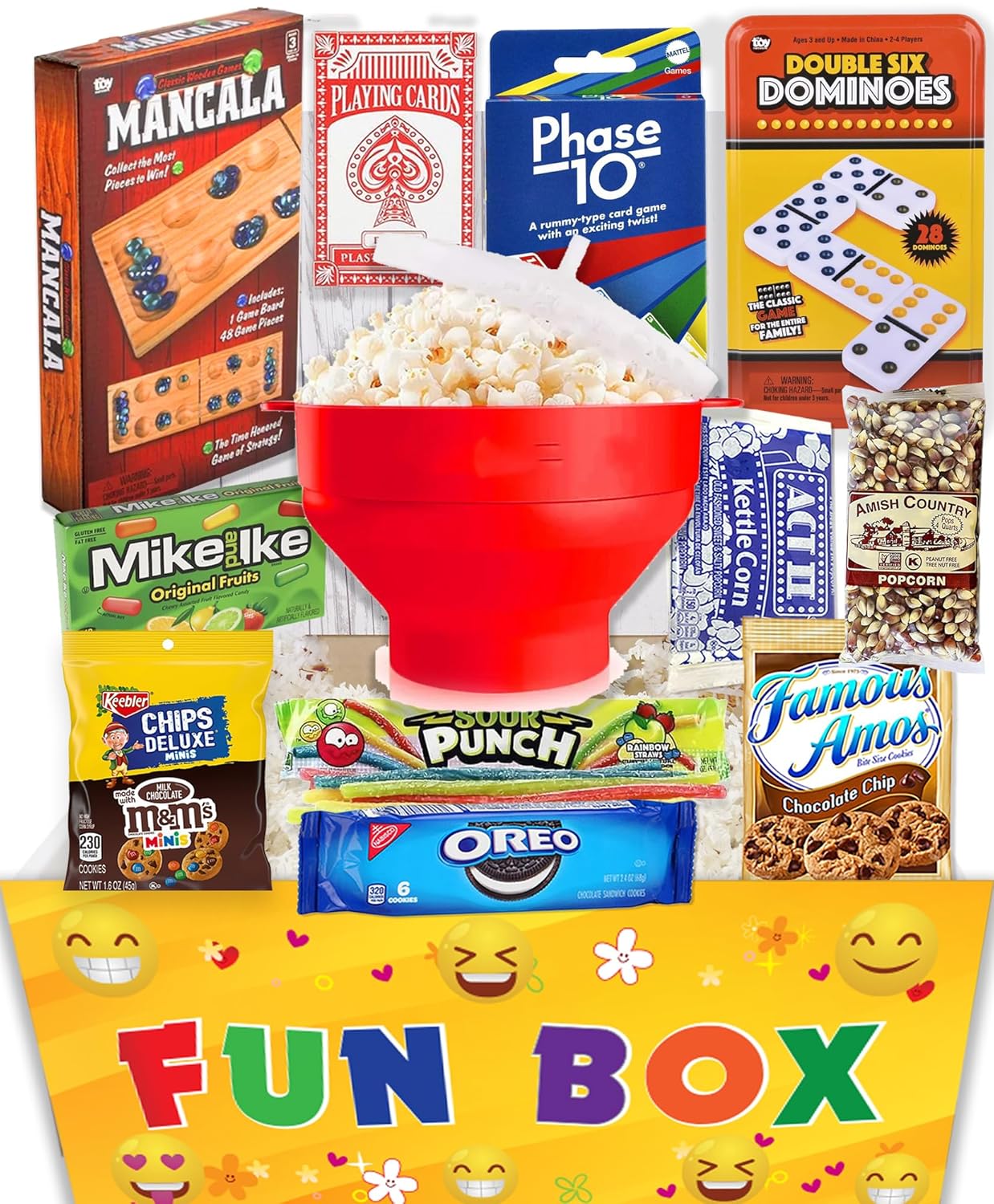 The Ultimate GIFT BASKET for Family & kids | Game Night Gift Box for Teens w/Games, Snacks & Candy for Teenage for Birthday | Housewarming, Movie/Bingo Night or college, Get Well Care package