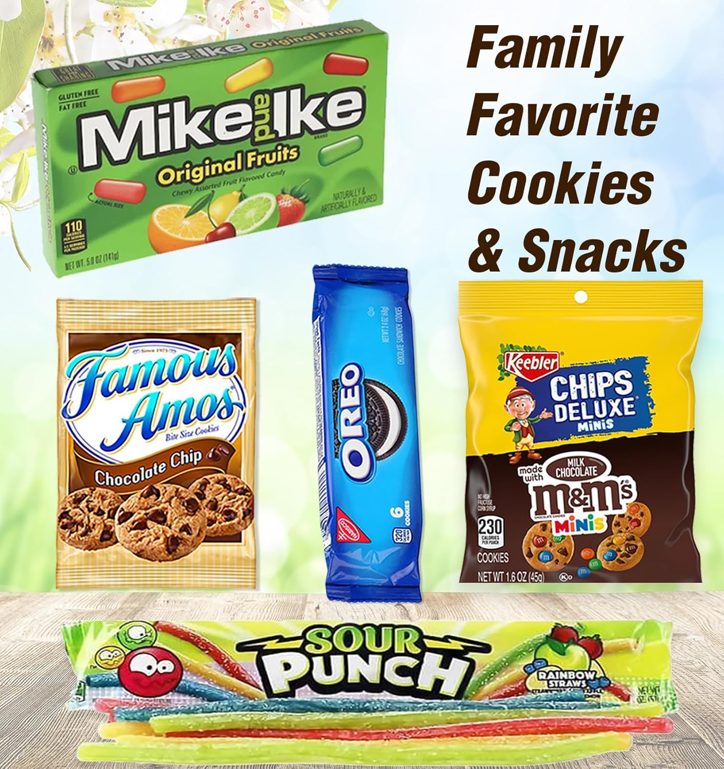- ♥Great for Family Housewarming for a new house, or Halloween Snacks & Candy: Microwave popcorn, 3 Cookie packs and 2 Sour Candy.
