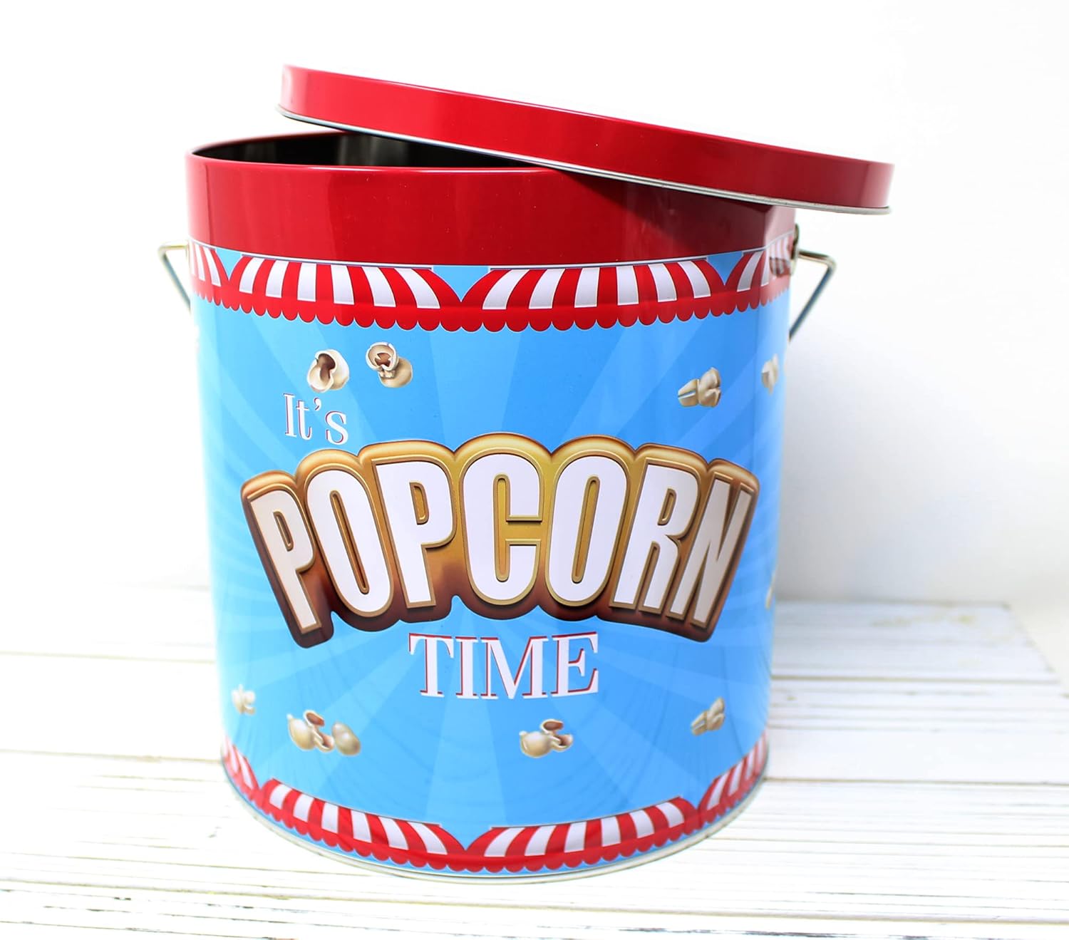 - ♥Don’t forget the option to add a Personal Message when you check "THIS ORDER CONTAINS A GIFT" so you can write your own message, Tin Box Size: 6.75 " Diameter x 7.125" Great for Popcorns or Cookies - 1 GallonThe perfect care package and gift for kids movie snacks gift basket